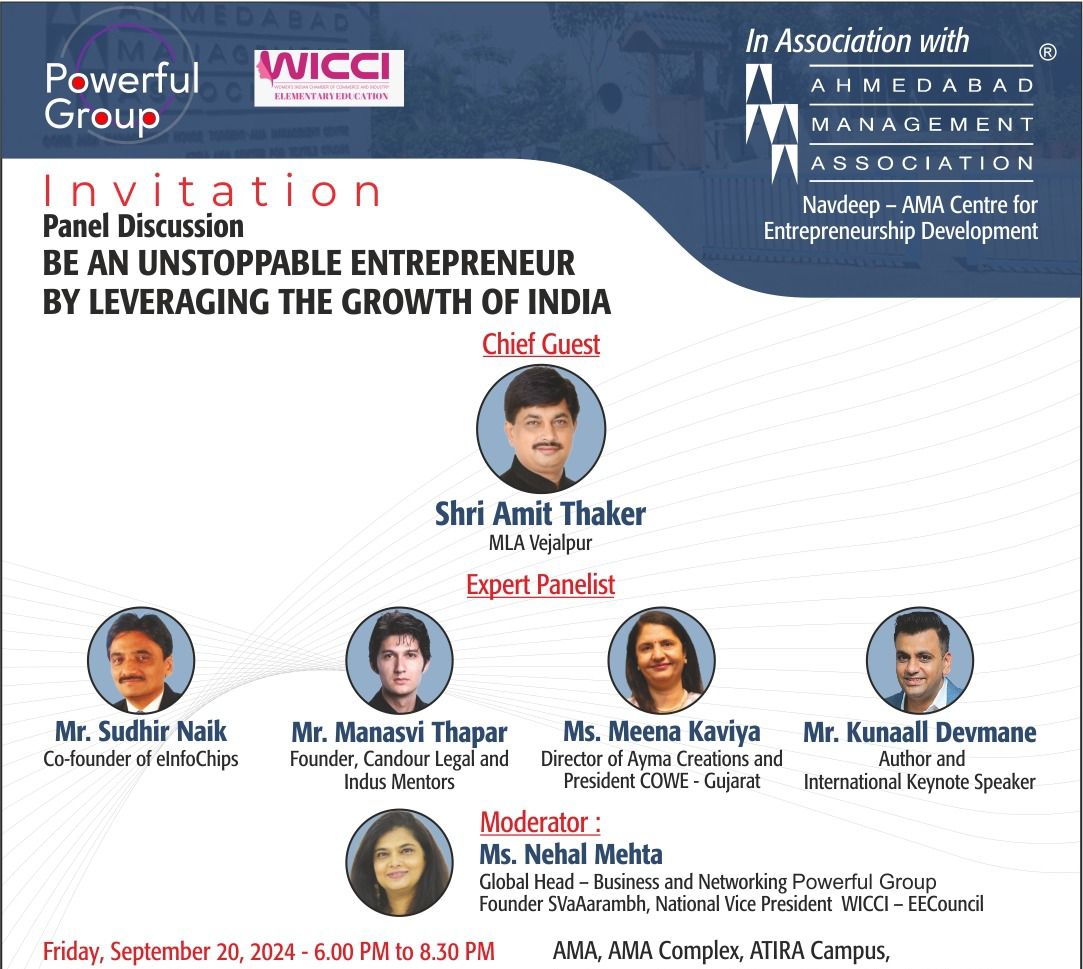 Ahmedabad: The Powerful Group, in collaboration with the Ahmedabad Management Association (AMA), is set to host an insightful and interactive panel discussion titled “Be an Unstoppable Entrepreneur by Leveraging the Growth of India.”